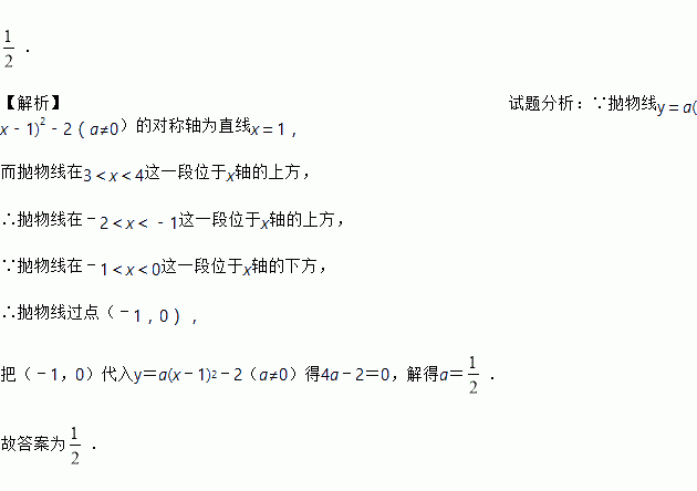 已知二次函数y=a(x﹣1)2﹣2(a≠0)的图象在﹣1<x<0这一段位于x轴下方,在3<x<4这一段位于x轴的上方,则a的值为 .
