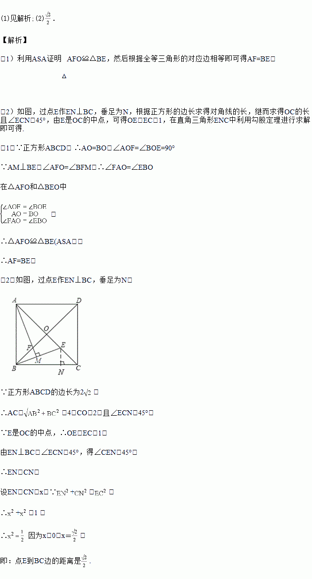 如图,正方形ABCD的边长为2,对角线AC、BD相交于点O,E是OC的中点,连接BE,过点A作AM⊥BE于点M,交BD于点F.