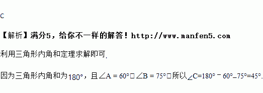一个缺角的三角形ABC残片如图所示,量得∠A=60°,∠B=75°,则这个三角形残缺前的∠C的度数为( )