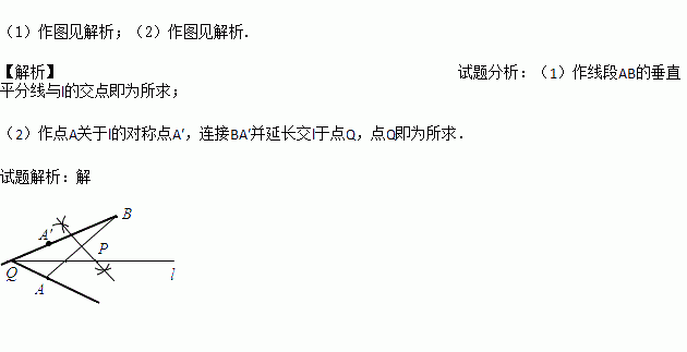 (2)在直线l上求一点Q,使l平分∠AQB.