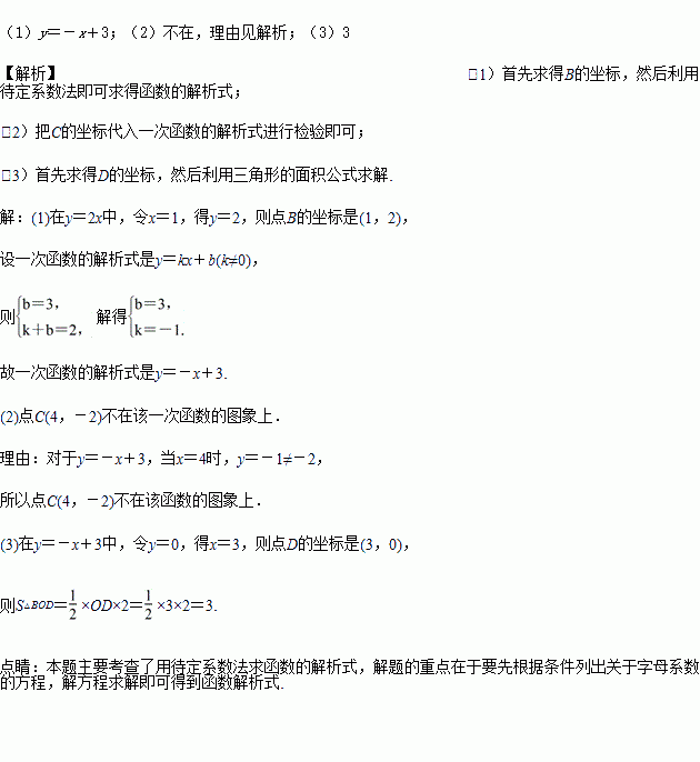 (3)若该一次函数的图象与x轴交于D点,求△BOD的面积.