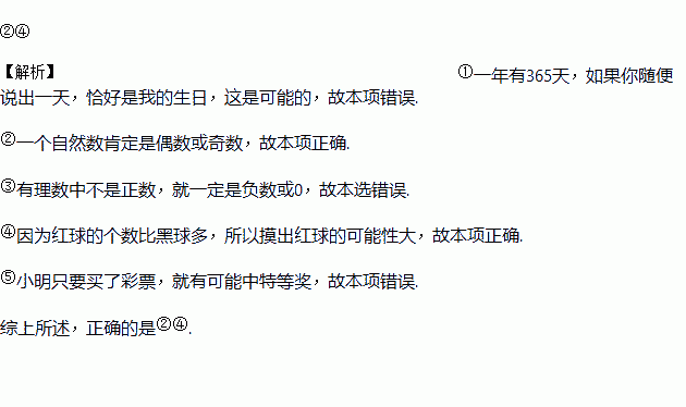 ②一个自然数不是偶数便是奇数,这是必然的.