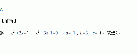 用公式法解﹣x2+3x=1时,先求出a、b、c的值,则a、b、c依次为( )