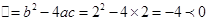 点评:本题难度较低,主要考查学生对根的判别式的掌握。