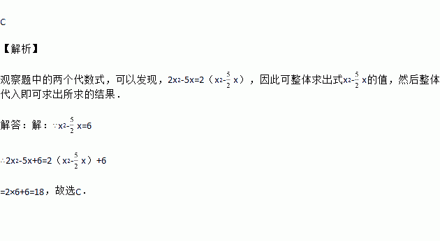 已知整式的值为6,则整式2x2-5x+6的值为( )