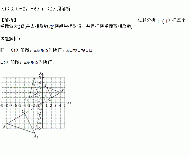 (1)在图中以点O为位似中心在原点的另一侧画出△ABC放大2倍后得到的△A1B1C1,并写出A1的坐标;