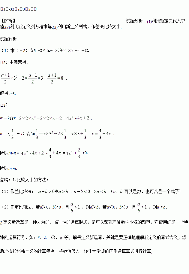 -x)☆3(其中x为有理数),试比较大小m n (填“>”、“<”或“=”).