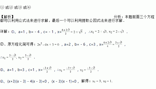 我们已经学习了一元二次方程的多种解法:如因式分解法,开平方法,配方法和公式法,还可以运用十字相乘法,请从以下一元二次方程中任选一个,并选择你认为适当的方法解这个方程.