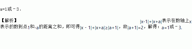 a=1或﹣3. 【解析】|x-1|+|x+a|表示在数轴上x表示的数到点1和-a的距离之和,即可得|x﹣1|+|x+a|≥|a+1|,故|a+1|=2,解得:a=1或﹣3.