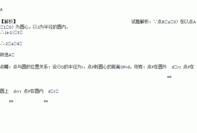 若点B(a,0)在以点A(1,0)为圆心,以3为半径的圆内,则a的取值范围是( )