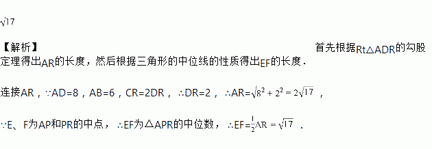 如图,矩形ABCD中R、P分别是DC、BC边上的点,AD=8,AB=6,CR=2DR,E、F分别是AP、RP的中点,当P在BC上从B向C移动而R不动时,线段EF长为_________.