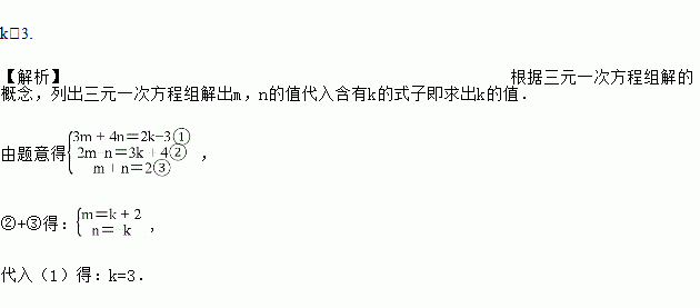 已知二元一次方程组的解为且m+n=2,求k的值.