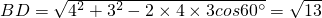 分析:根据四边形的内角和定理求出∠BAD=60°,然后在△ABD中由余弦定理求得BD的值;