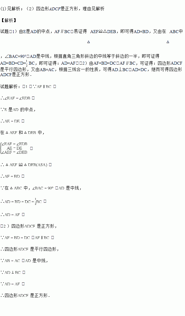 如图,在中,,AD是中线,E是AD的中点,过点A作交BE的延长线于F,连接CF.