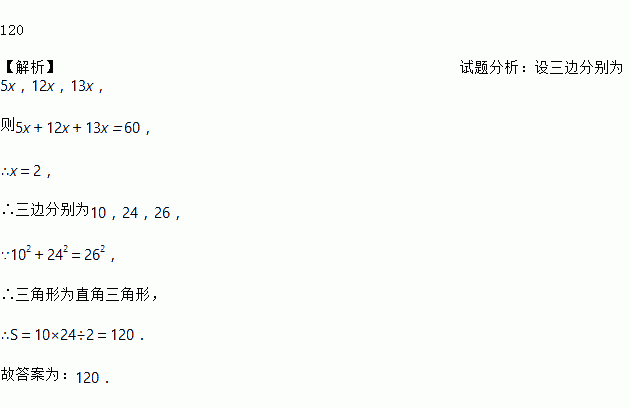 一个三角形的三边之比为5∶12∶13,它的周长为60,则它的面积是________.