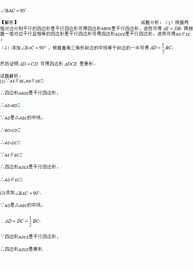 当满足条件______时,四边形ADCE是菱形,请补充条件并证明.