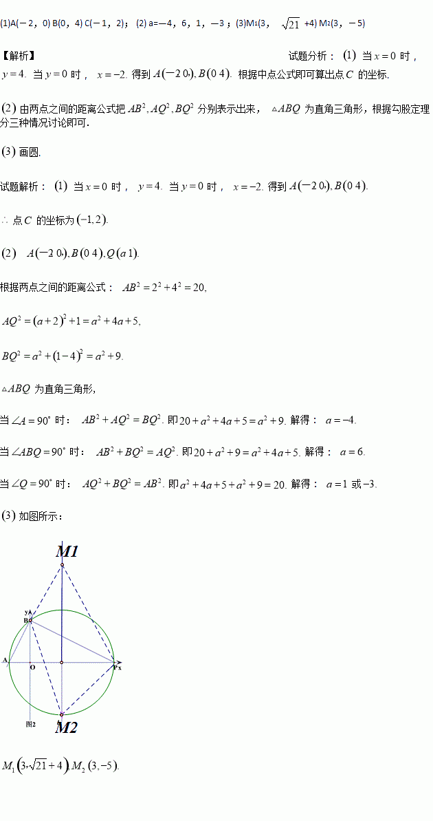 (2)已知点Q(a,1),若△ABQ为直角三角形,求a的值;