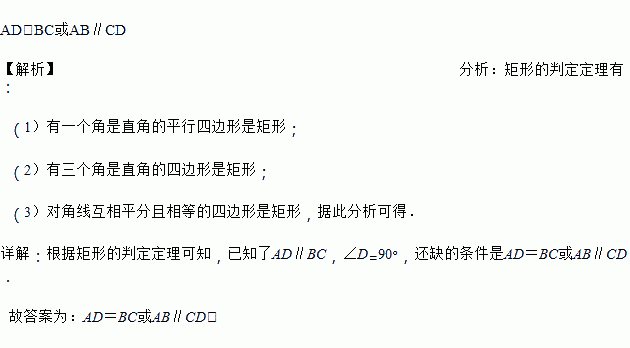 在四边形中,,若再添加一个条件,就能推出四边形 是矩形,你所添加的条件是__________________.(写出一种情况即可)