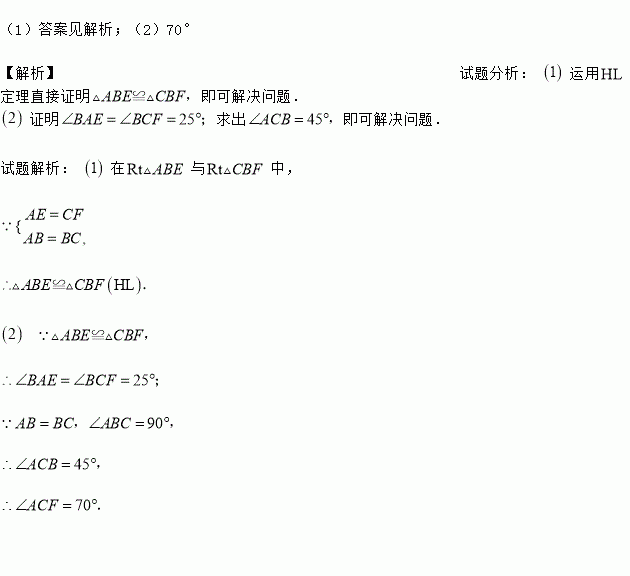 (1)答案见解析;(2)70° 【解析】试题分析: 运用定理直接证明 即可解决问题. 证明 求出 即可解决问题. 试题解析: 在与中,