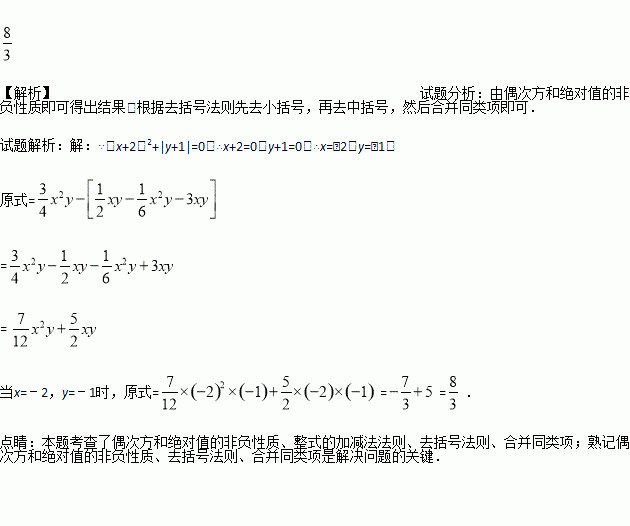 已知(x+2)2+|y+1|=0,化简并求值: .