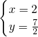 将x=2代入①得:2+2y=9,