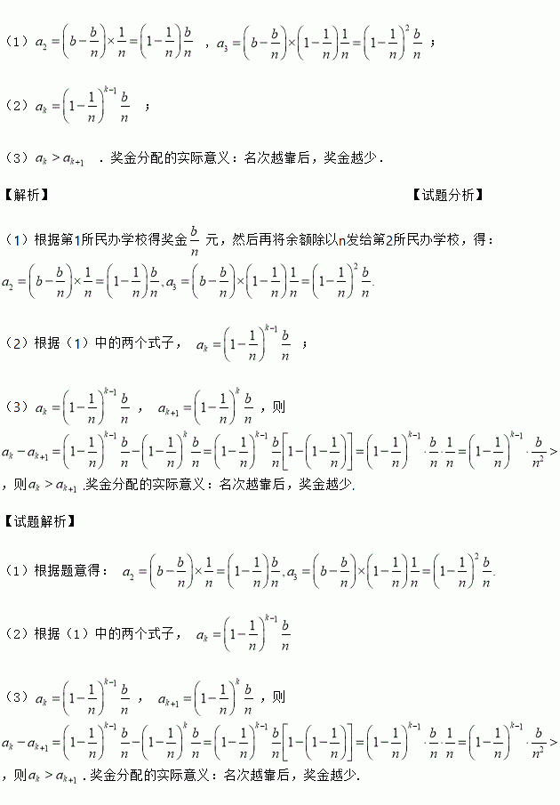 Ϊ½øÒ»²½Âäʵ¡¶ÖлªÈËÃñ¹²ºÍ¹úÃñ°ì½ÌÓý´Ù½ø·¨¡·£¬Ä³ÊнÌÓý¾ÖÄóöÁËbÔª×ʽð½¨Á¢Ãñ°ì½ÌÓý·¢Õ¹»ù½ð»á£¬ÆäÖÐÒ»²¿·Ö×÷Ϊ½±½ð·¢¸øÁËnËùÃñ°ìѧУ£®½±½ð·ÖÅä·½°¸ÈçÏ£ºÊ×ÏȽ«nËùÃñ°ìѧУ°´È¥ÄêÍê³É½ÌÓý¡¢½Ìѧ¹¤×÷Òµ¼¨£¨¼ÙÉ蹤×÷Òµ¼¨¾ù²»Ïàͬ£©´Ó¸ßµ½µÍ£¬ÓÉ1µ½nÅÅÐò£¬µÚ1ËùÃñ°ìѧУµÃ½±½ð