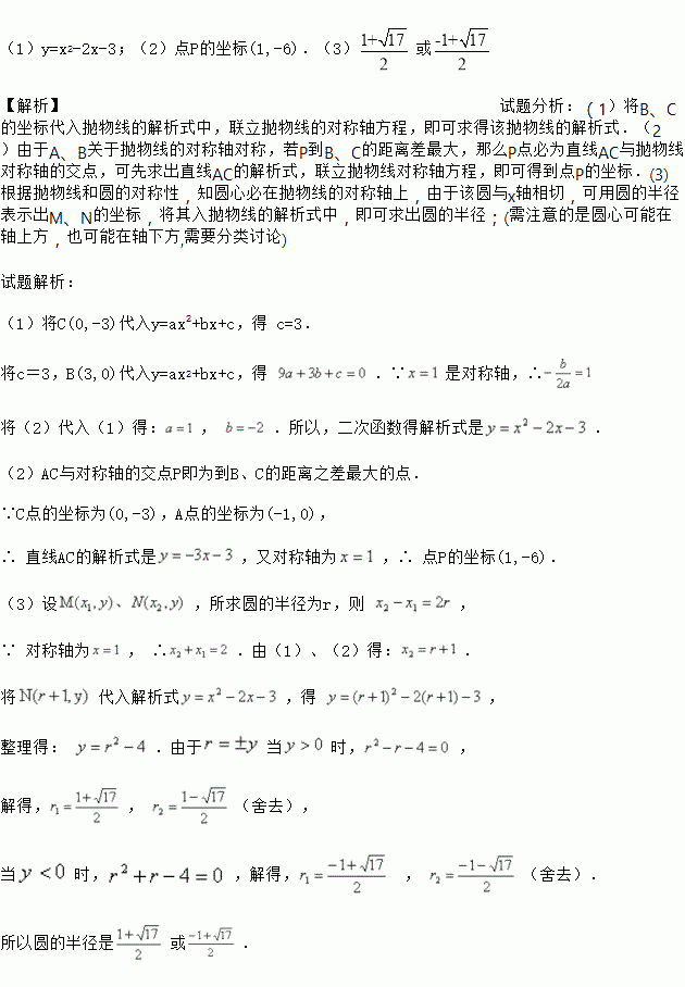 抛物线y=ax2+bx+c交x轴于A、B两点,交y轴于点C,已知抛物线的对称轴为x=1,B(3,0),C(0,-3),