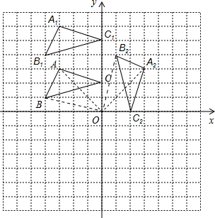 (2)将△ABC绕点O顺时针旋转90°,请画出旋转后的△A2B2C2,并求点B所经过的路径长(结果保留x)