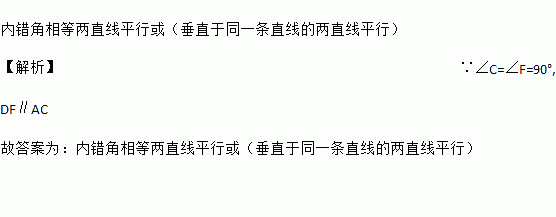 两个同样的直角三角板如图所示摆放,使点F,B,E,C在一条直线上,则有DF∥AC,理由是_____.