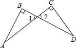 分析:由AB丄BD,AC丄CD,可得∠A=90°-∠1,∠D=90°-∠2,又由对顶角相等,可得∠D=∠A.