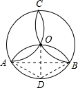 ∴∠ADB=2∠ADO=120°,AD=OD=BD=r,