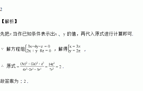 若3x﹣4y﹣z=0,2x+y﹣8z=0,则的值为_____.