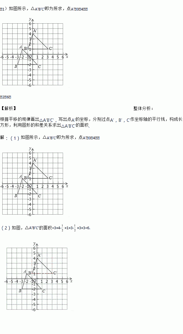 (1)在图中画出△A'B'C',并写出平移后A'的坐标;