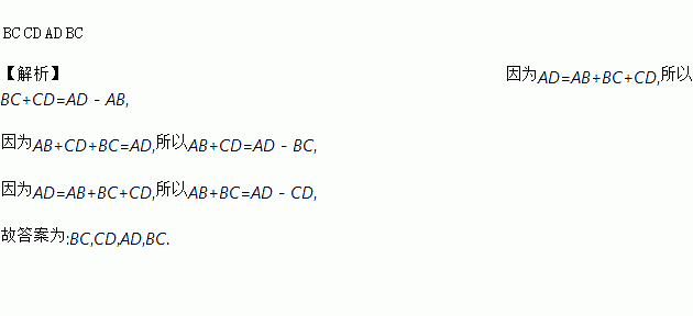 如图,A,B,C,D是一直线上的四点,则_+__=AD﹣AB,AB+CD=__﹣__.