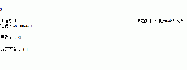 已知关于x的方程2x+a=x﹣1的解为﹣4,则a=_____.