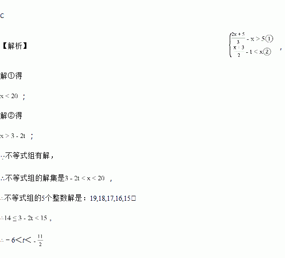 已知关于x的不等式组恰有5个整数解,则t的取值范围是( )