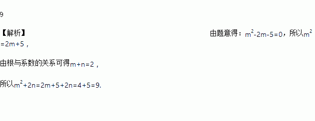 已知m,n是方程x2-2x-5=0的两个实数根,则m2+2n的值为_______