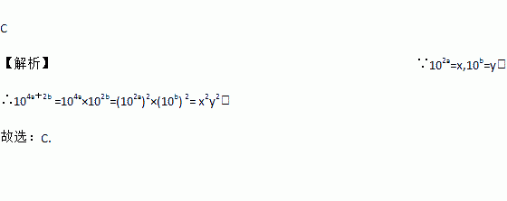 C 【解析】∵102a=x,10b=y, ∴104a+2b =104a×102b=(102a)2×(10b) 2= x2y2, 故选:C.