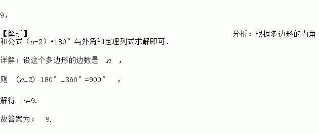 一个多边形的内角和比它的外角和大900°,则这个多边形的边数是____.