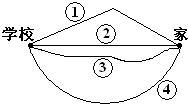 小明从家到学校有4条路可走,如图所示.若想走最短的路,应该选择第________条路,这是根据________.