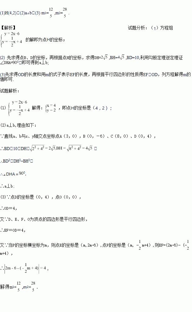 x+4相交于点H,分别与x、y轴交于点A、B、C、D,点P在x轴上,过点p作x轴的垂线,分别与直线a、b交于点E、F。