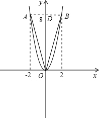 分析:(1)将A(-2,8)代入抛物线y=ax2即可求出a=2,从而得到函数解析式;