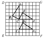 如图,在一个10×10的正方形DEFG网格中有一个△ABC。 ①在网格中画出△ABC向下平移3个单位得到的△A1B1C1。②在网格中画出△ABC绕C点逆时针方向旋转90°得到的△A2B2C。③若以EF所在的直线为x轴,ED所在的直线为y轴建立直角坐标系,写出A1、A2两点的坐标。