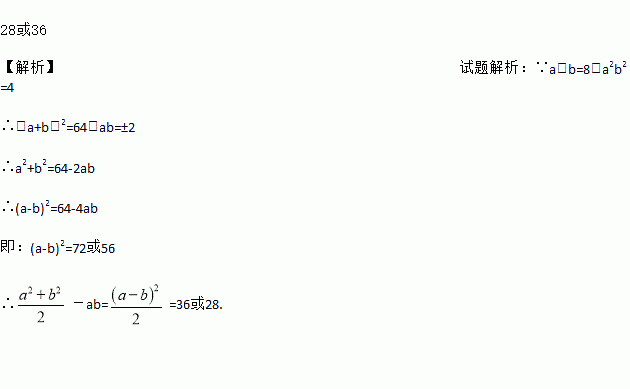 已知a+b=8,a2b2=4,则-ab=___________________________.