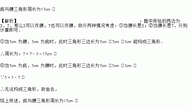 等腰三角形的两边分别为和,求等腰三角形的周长.