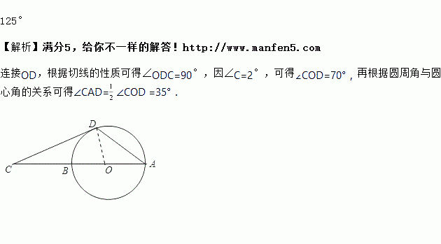 如图所示,AB是⊙O的直径,点C在AB的延长线上,CD与⊙O相切于点D,若∠C=20°,则∠CDA=___.