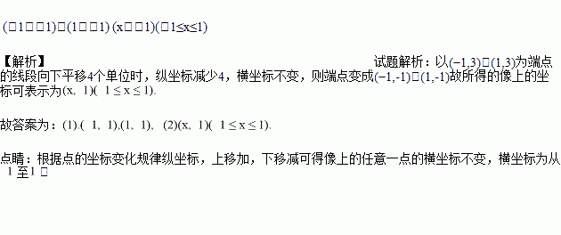 把以 (-1,3),(1,3)为端点的线段向下平移4个单位,此时线段两端点的坐标分别为____________,所得像上任意一点的坐标可表示为_____________.