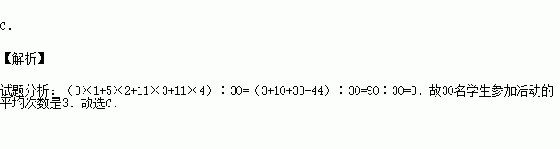 学校抽查了30名学生参加“学雷锋社会实践”活动的次数,并根据数据绘制成了条形统计图,则30名学生参加活动的平均次数是( )