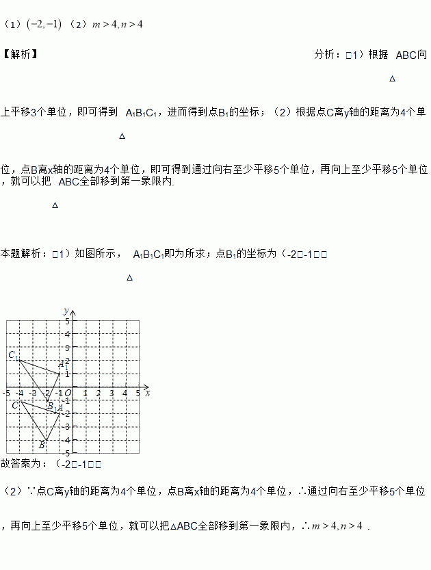 个单位,就可以把△ABC全部移到第一象限内,请写出