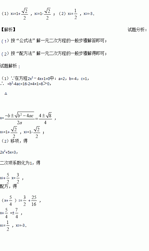 (1)2x2﹣4x+1=0(公式法)